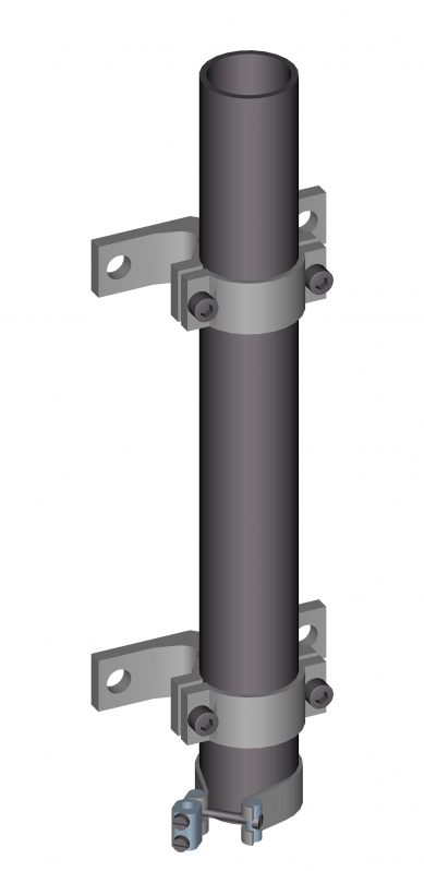 La fixation murale permet le montage d'instruments de mesure météorologique sur un mur. La fixation est constituée d'un tube vertical, de deux chevilles de fixation et d'une pince de masse.